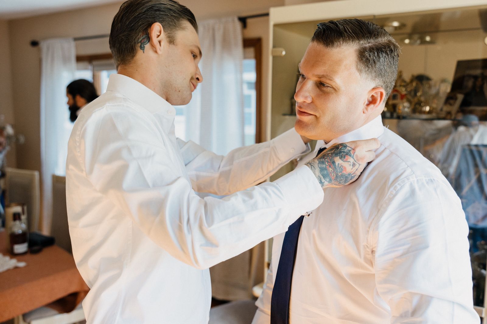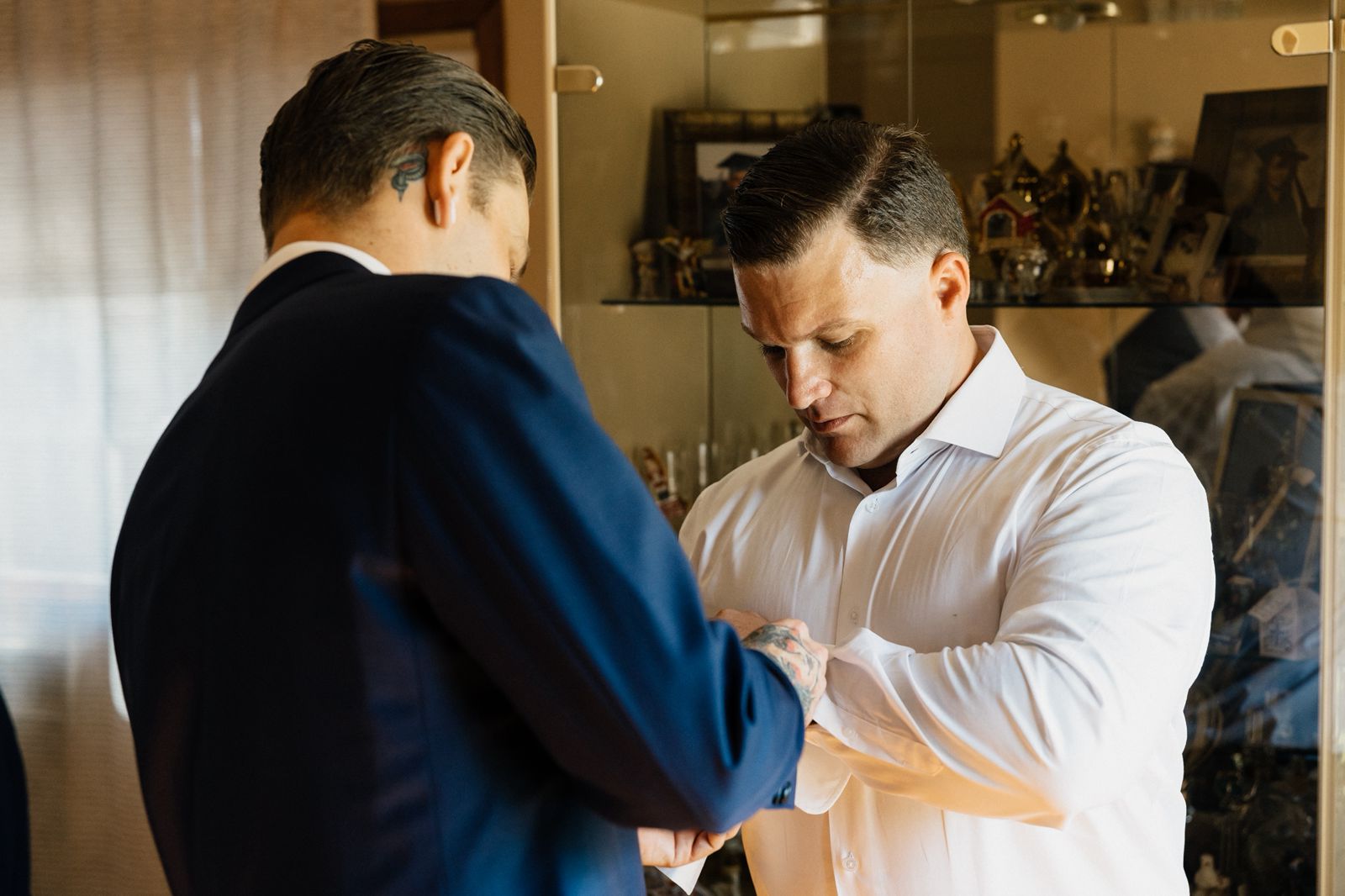 The day began with getting ready at their parents’ house, where excitement mixed with calm anticipation. Bianca’s home was filled with warmth, laughter, and those fleeting emotional moments that make a wedding morning so special. The natural light pouring through the windows gave every image a sense of intimacy and authenticity. Cole, getting ready nearby, shared a similar energy — grounded, joyful, and ready to start this new chapter.