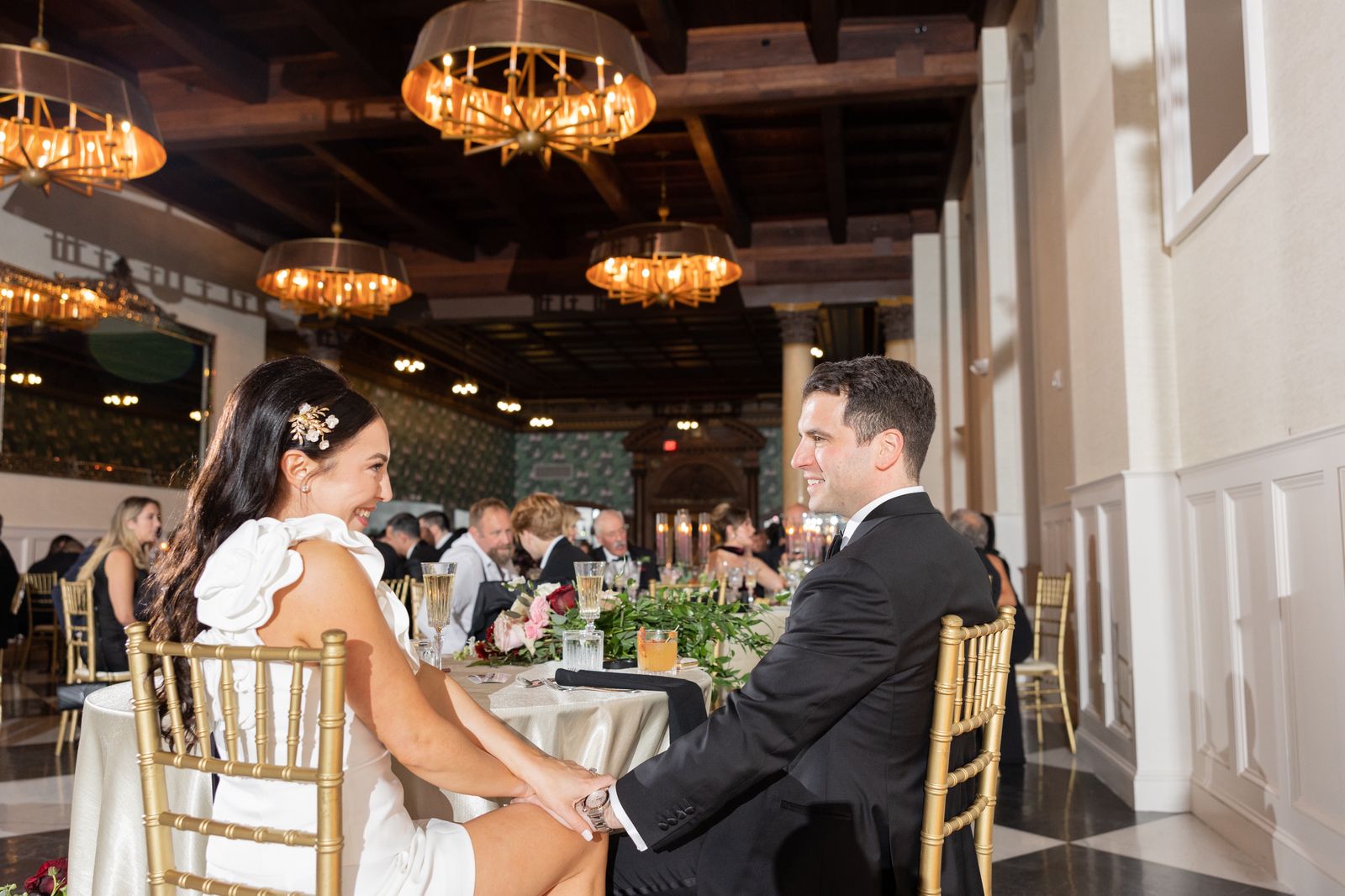 During cocktail hour, the energy shifted into celebration. Conversations, laughter, and the subtle transition from emotion to joy filled the space. This was also the perfect time to continue their photo session, capturing relaxed, natural portraits while the light softened around us.