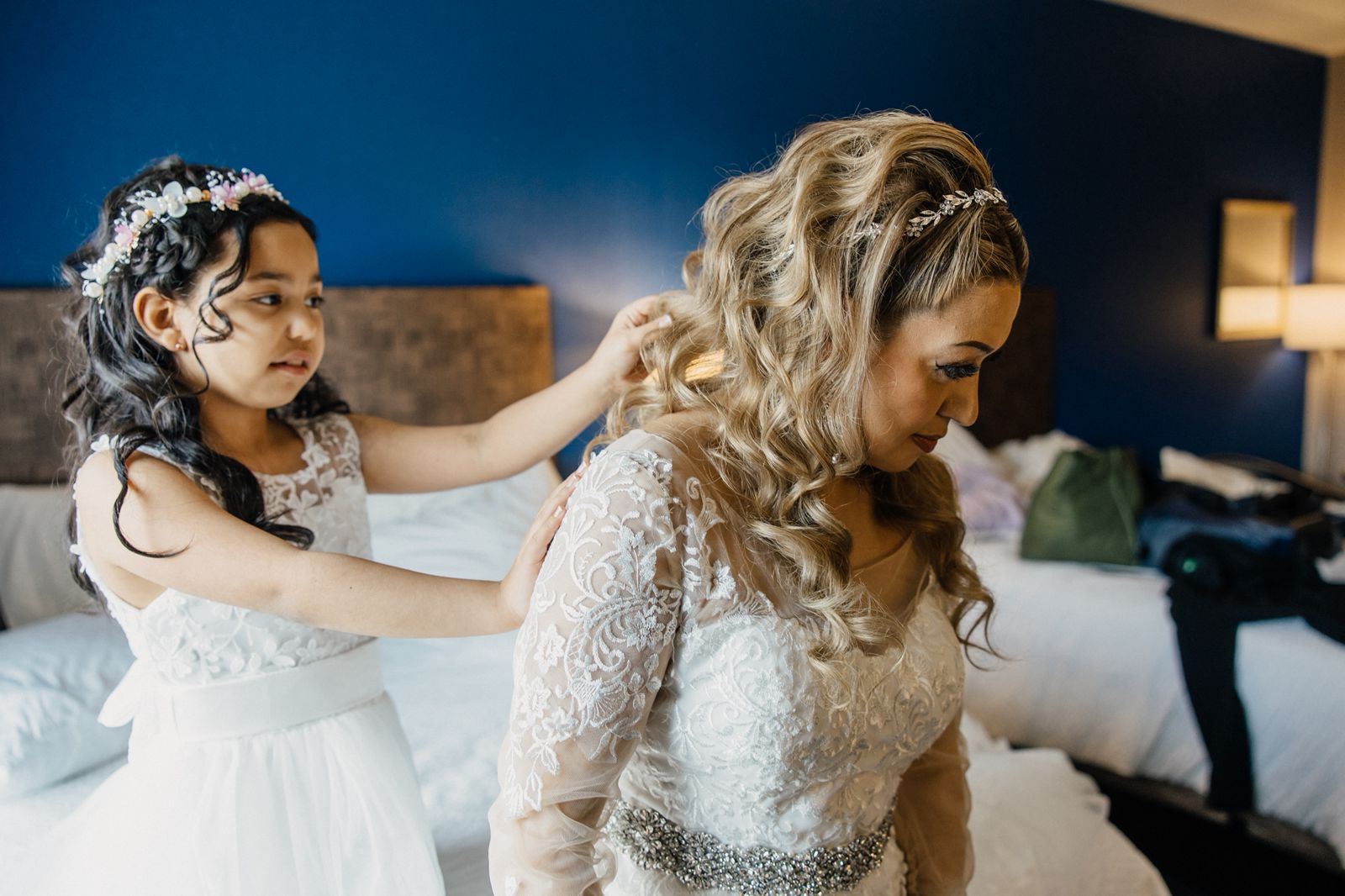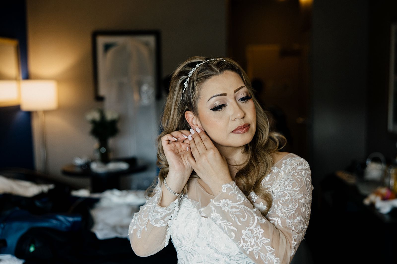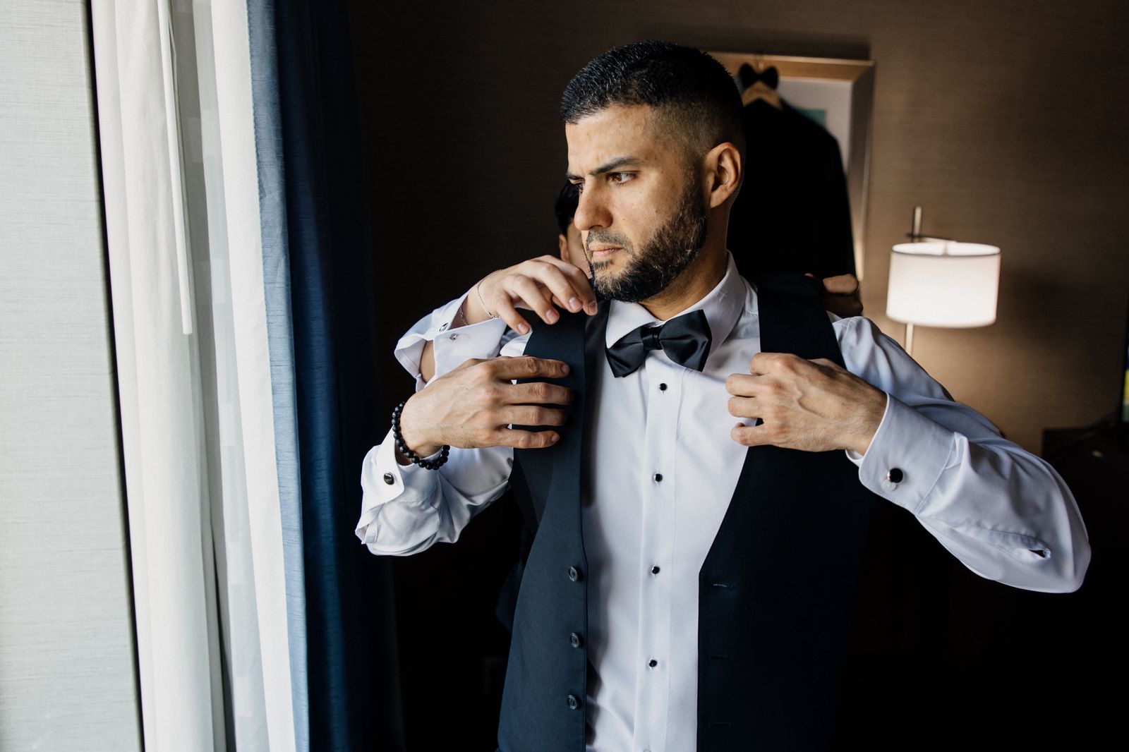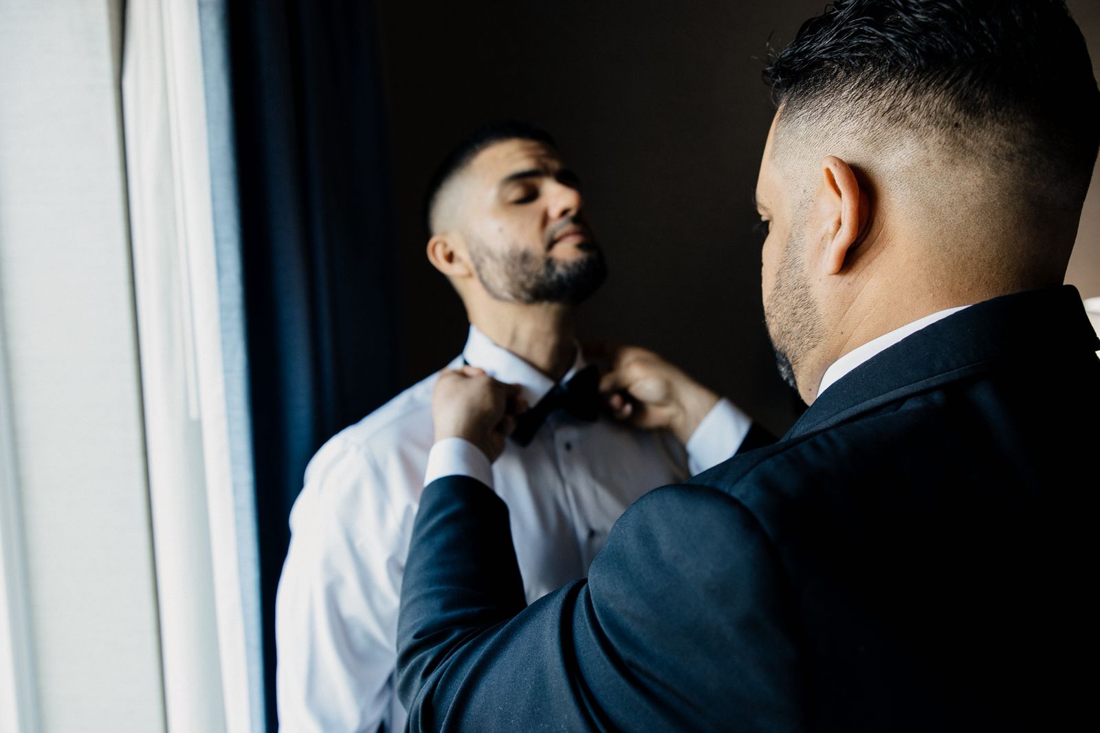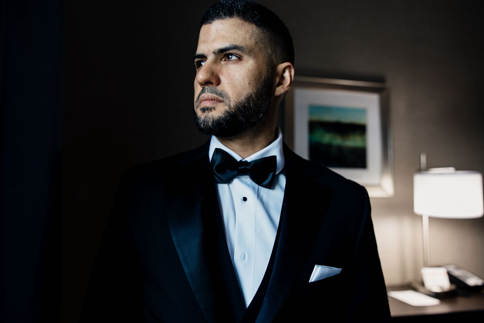 The day started with getting ready at the Holiday Inn in Peekskill. The atmosphere was calm but full of anticipation. Valentina was surrounded by soft light and delicate details—her dress, her veil, every element carefully placed. One of the most genuine moments came as she prepared, assisted with care and attention, creating images that felt intimate and real. Meanwhile, Salomon’s preparation carried a different energy—focused, composed, and intentional. As a professional wedding photographer, these contrasts are what help build a complete story.