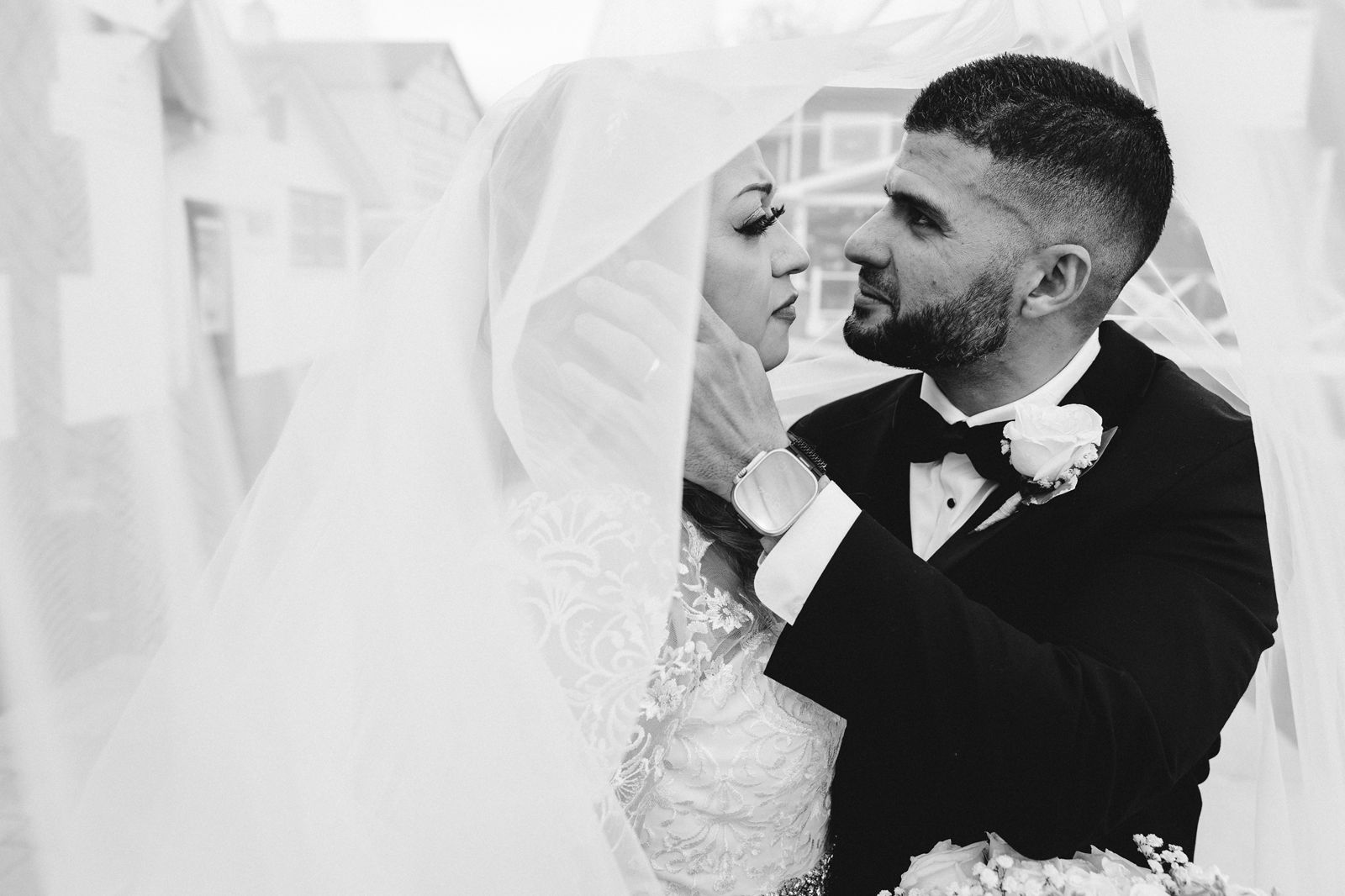 After the ceremony, we moved into their couple portraits, and this is where the day opened up creatively. The outdoor setting gave us space to create a more natural and expressive photo session. One of the most striking moments was capturing them under the veil—soft, intimate, and completely focused on each other. Those are the frames that often define the visual identity of a wedding.